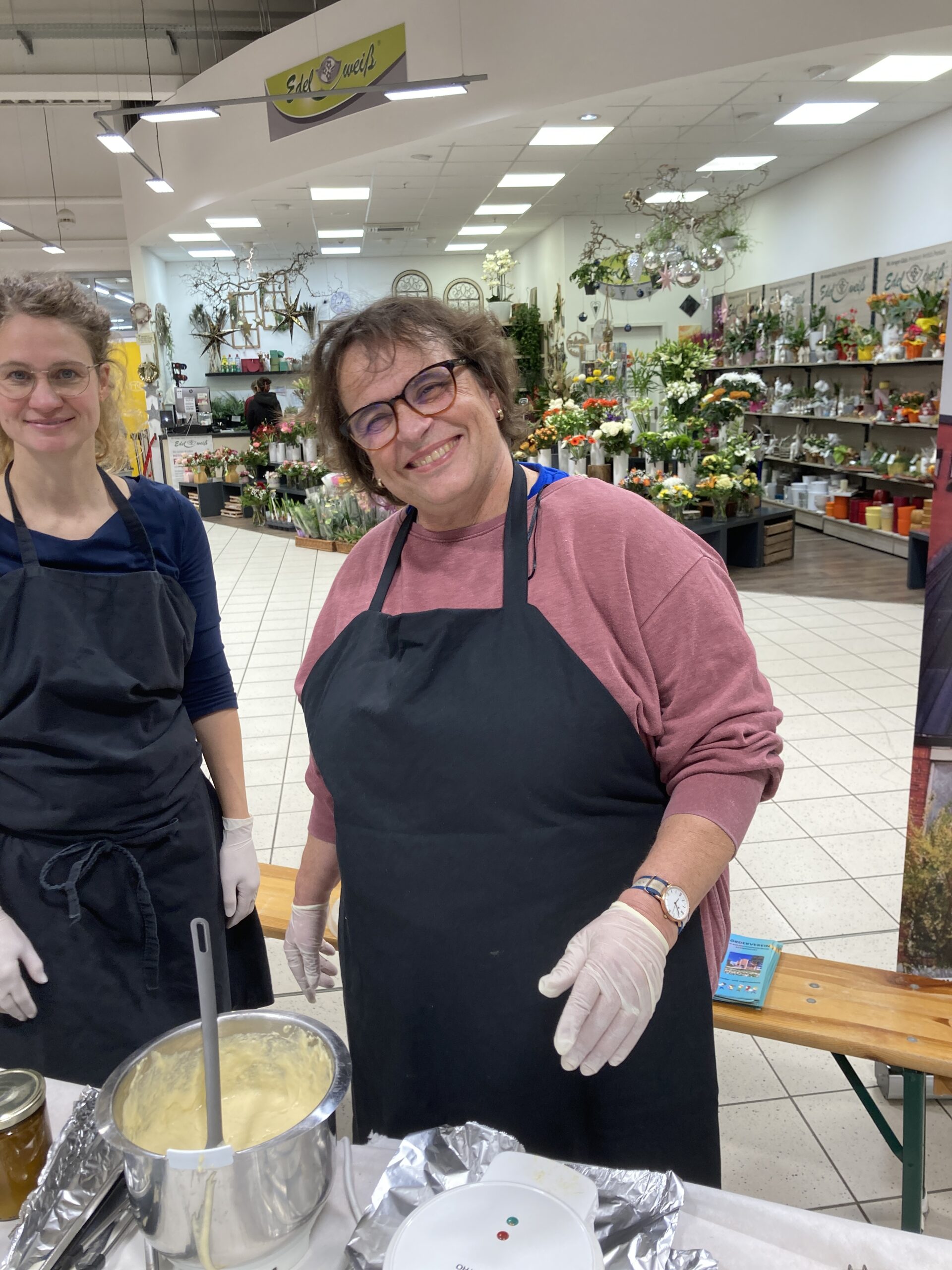 Insgesamt zeigten sich die Kunden sehr spendabel. So landete auch mal ein 5-Euro-Schein für eine einzige Waffel in unserer Spendenbox für den Förderverein. Besonders schön waren die Begegnungen mit ehemaligen Kirchgängern oder mit Personen, die in der AK getauft wurden. Und am schönsten ist es, wenn das Team selbst mit Freude dabei ist.